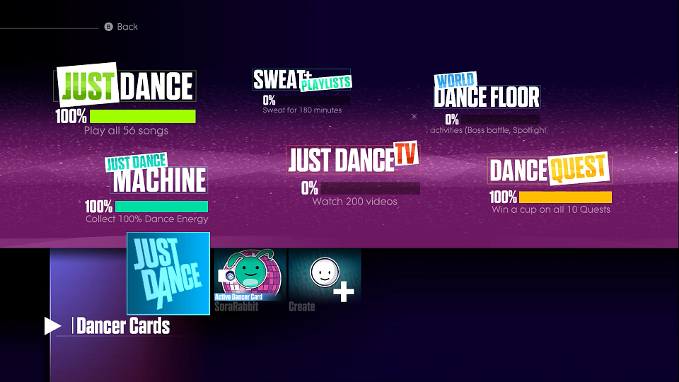The UI is completely changed, giving you categories you can scroll between where it shows you the full list or separates songs by number of dancers, mash-ups, things like that. Progression is tracked in your profile, and it gives you a percentage for the various tasks you complete in the game. (As shown in the screenshot above.)