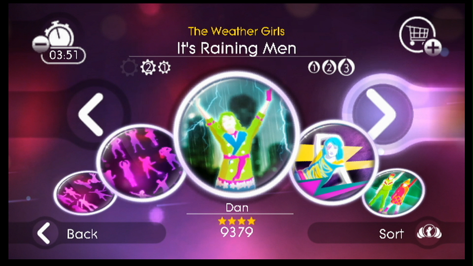Just Dance 3 had 42 songs. There were an additional 23 unlockable as alternates or mash-ups, and 3 medleys. (There were 11 more songs that were region, console, or retailer specific.) 37 songs were released as paid DLC on the Wii, and the price jumped up 50 cents each track. (Many of the DLC were from the previous two editions.) In this edition, you are given a “song style” after completing a song showing how the game interpreted your performance.