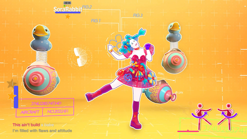 This edition of Just Dance is almost identical to the previous one. They continue the stripped-down look, the white aesthetics, and the lack of new gameplay evolutions or options. The Gift Machine returns, this time with 200 prizes, which are all titles, avatars, and skins. (Weirdly enough, when I first played it I was told there were 200 prizes, but then I earned 4 before playing my first song. Maybe from playing previous JD games on the Switch? I dunno.)