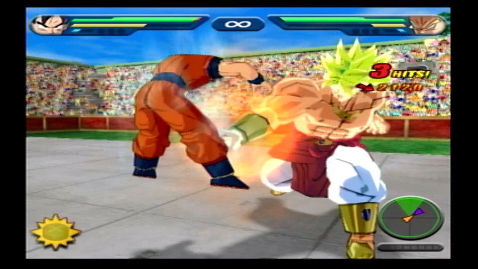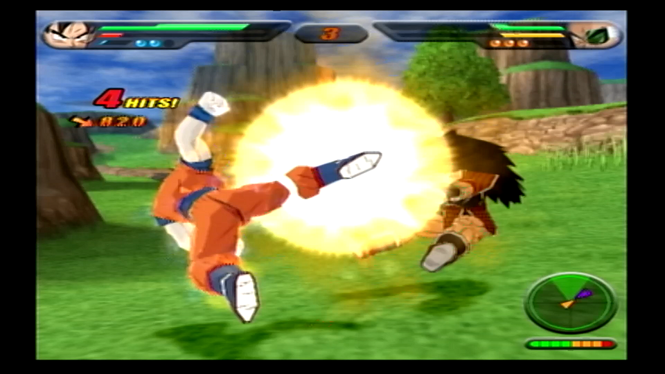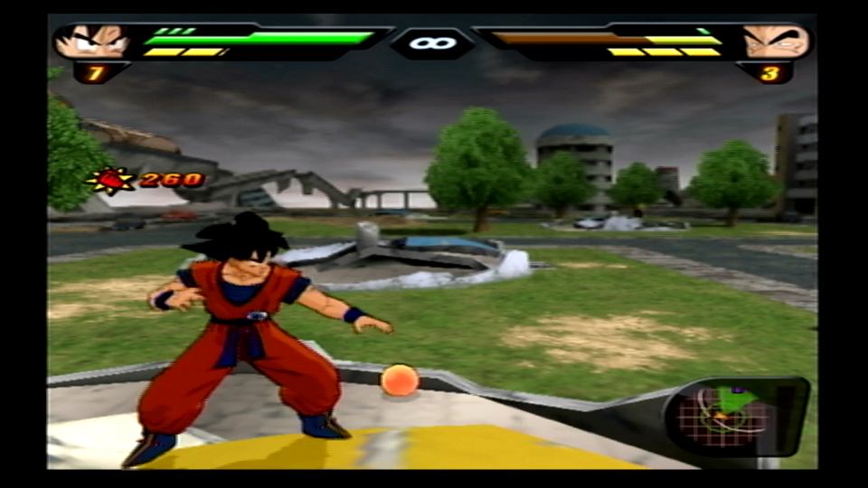 The gameplay in this game is completely different from the Budokai series. They go from a 2.5D perspective to a behind-the-back 3D camera. Every battle is completely free roam with a lock-on system. When you approach your opponent, you click to them like a magnet to allow for easier fighting. When you leave this approach area, you can float or fly freely around the stage. Much of the environment can be destroyed. You can even hide from your opponent if you choose to. You can locate your opponent using something called Z-Search. You can teleport around, jump, guard, and taunt. (Although I didn’t use those last two that much.)